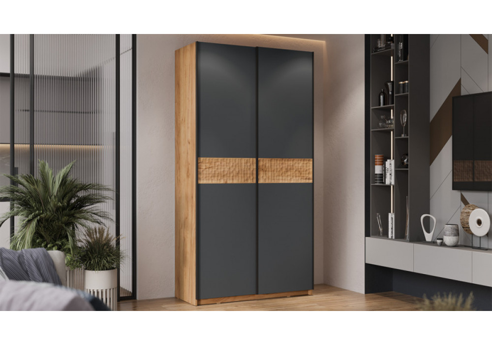 Шкаф-купе с 2 глухими дверями «Оскар Скания» Ручка черная, Дуб Крафт золотой, Серый графит, Дуб тортугга